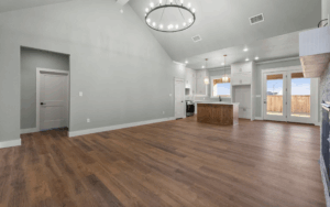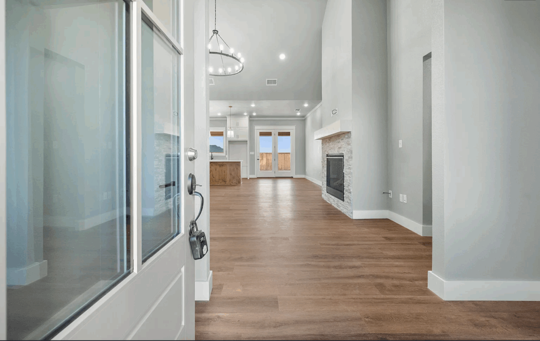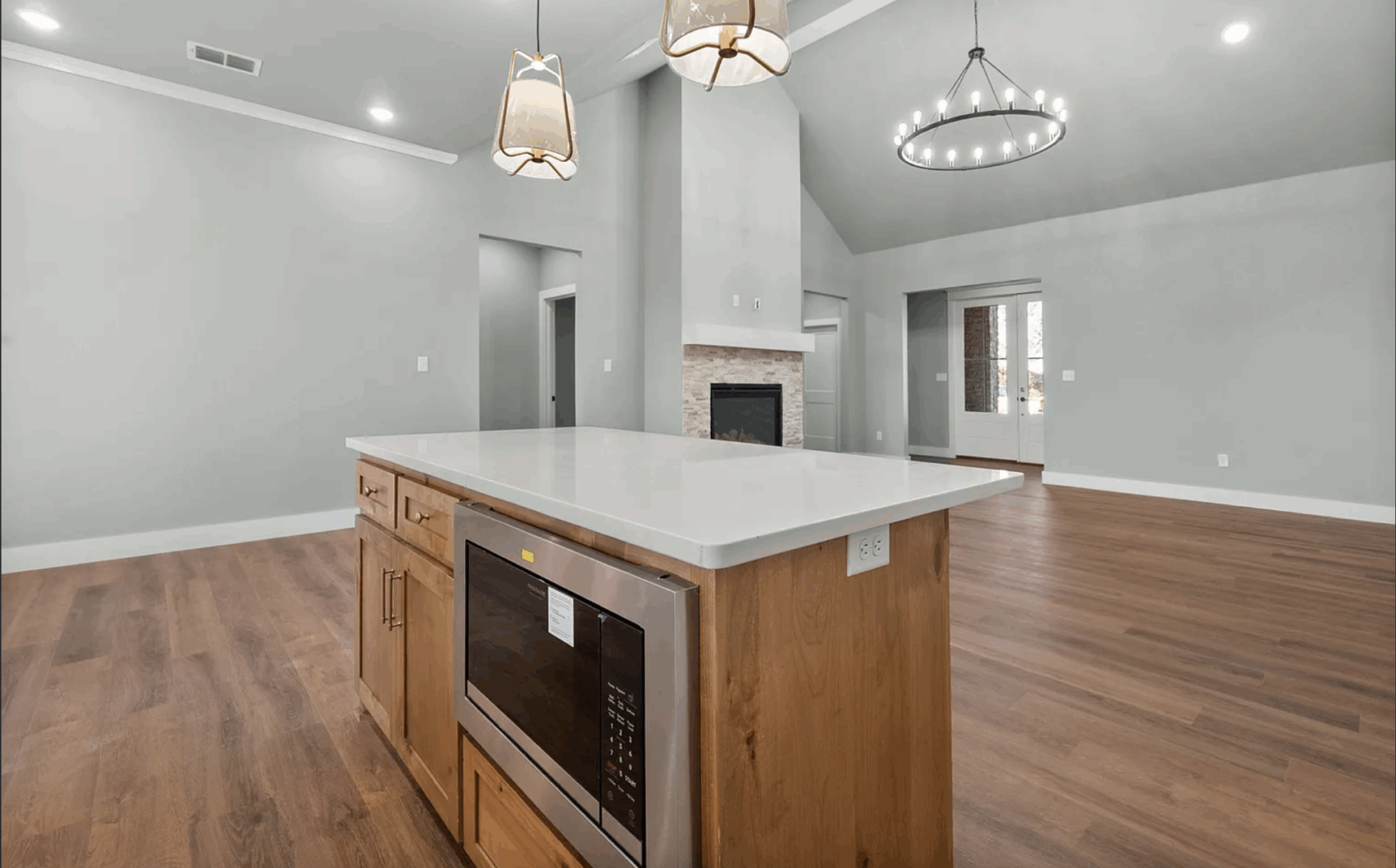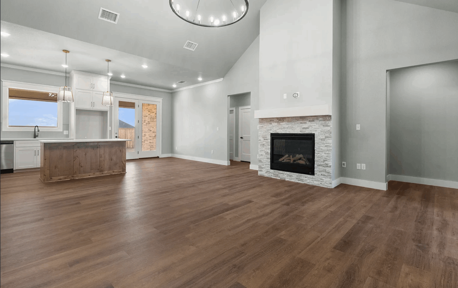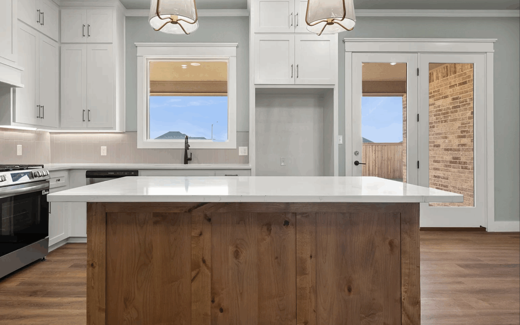 This beautifully designed 4-bedroom, 2-bathroom home offers a spacious open layout ideal for modern living. The heart of the home features a bright and airy living room, a chef-inspired kitchen with a large island and walk-in pantry, and a dedicated dining area that opens to the covered back porch—perfect for indoor-outdoor entertaining.