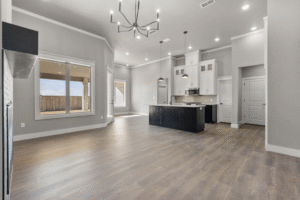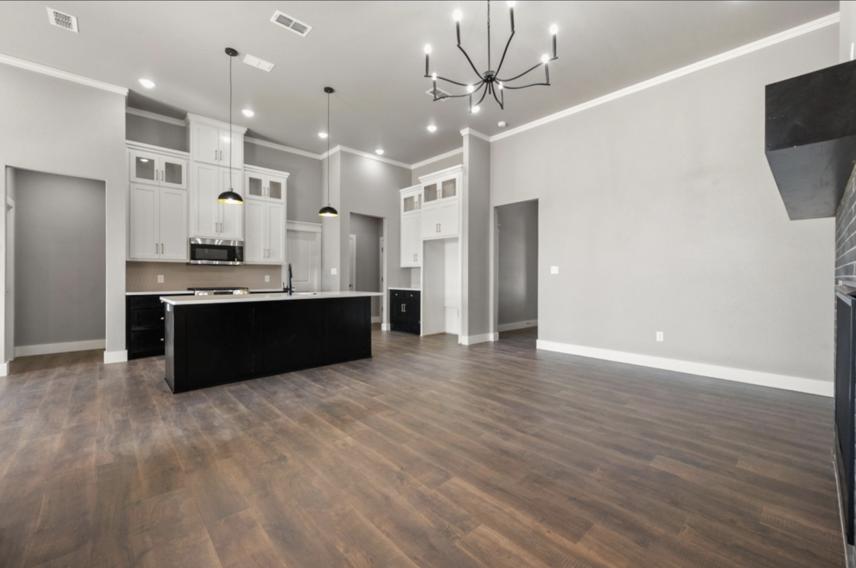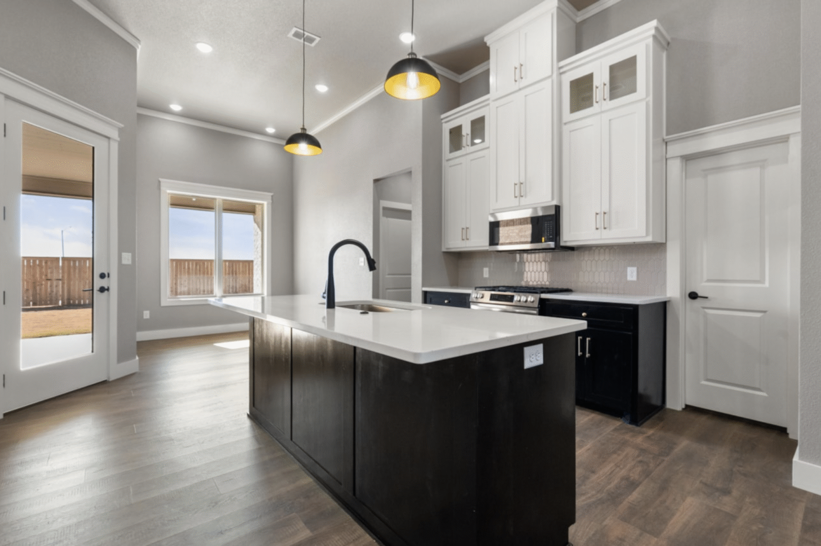 This beautifully designed 4-bedroom, 2-bathroom home offers a spacious open layout ideal for modern living. The heart of the home features a bright and airy living room, a chef-inspired kitchen with a large island and walk-in pantry, and a dedicated dining area that opens to the covered back porch—perfect for indoor-outdoor entertaining.